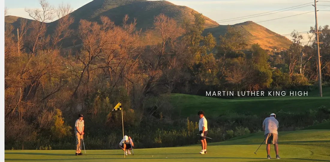 NORCO: The Martin Luther King Wolves squared up once again against the Roosevelt Mustangs in the second JV match of the season, this time hosted at Goose Creek GC in Norco. The course, while beautiful and in excellent condition, showed its teeth early, and our team struggled with clipped trees, boundary lines, and quick greens. Gusty winds took their toll as well, and we had to learn how to play for them on the narrow fairways and greens. The boys settled in after a few holes, though, and with quick rounds that beat the expected pace of play, we finished before sunset.
